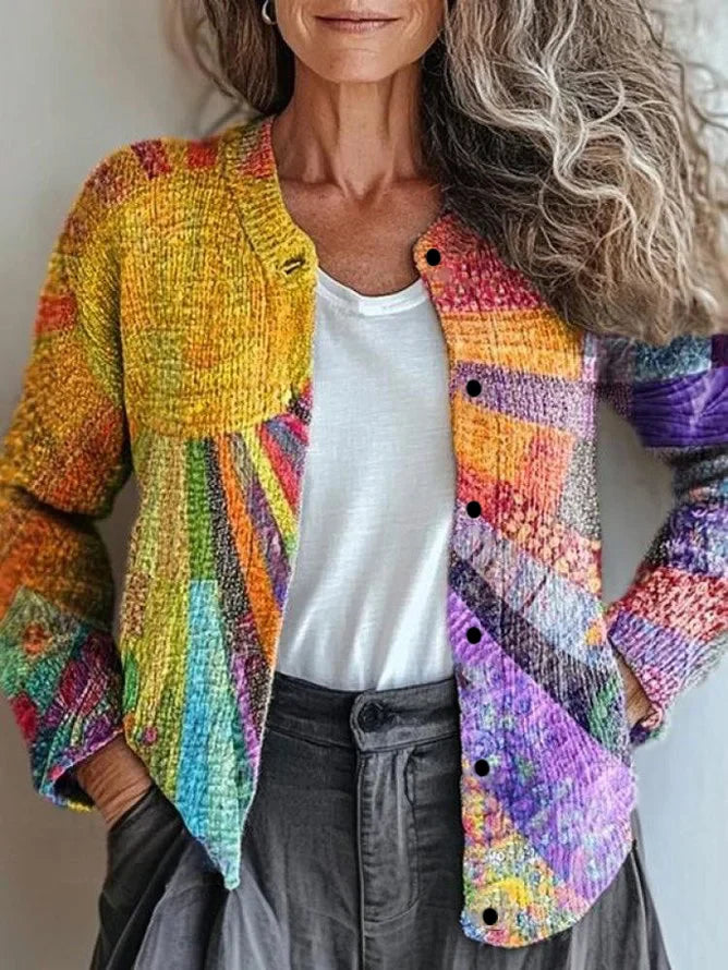 Agata - Damska Kardigan z nadrukiem patchworkowym | Z guzikami