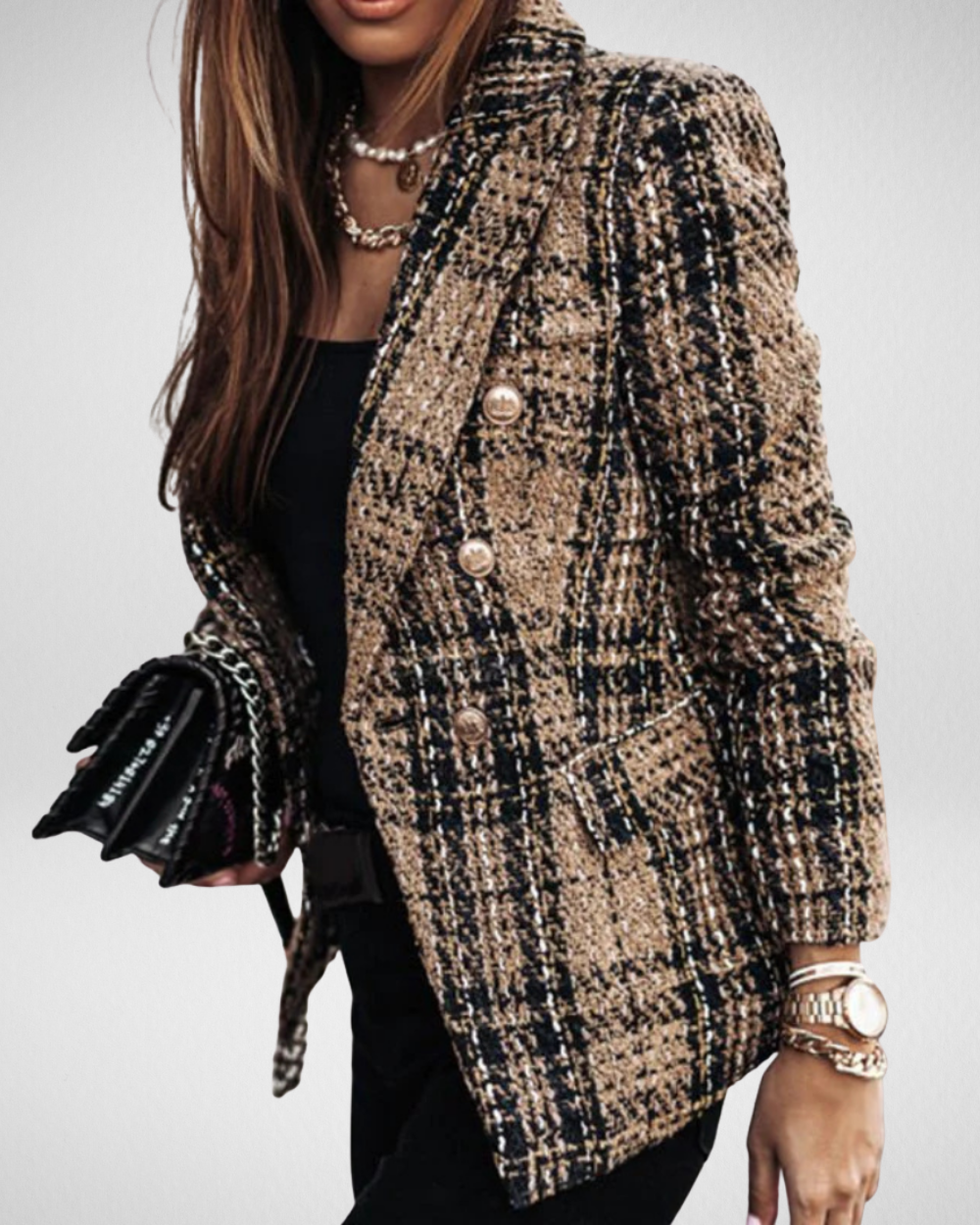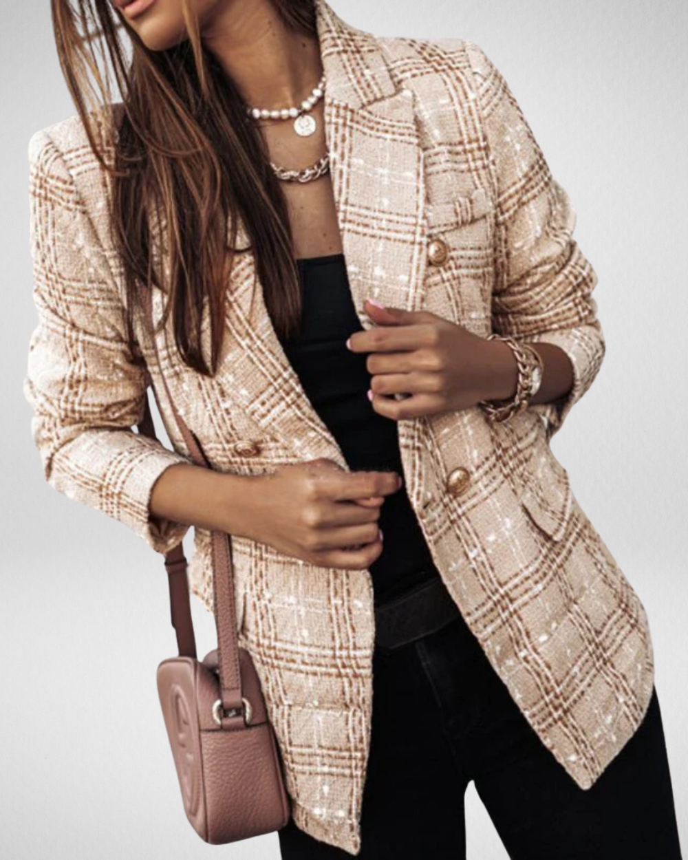 Kochana, zakładając marynarkę Clara, od razu czujesz klasyczny szyk i wygodę w jednym. Dopasowany krój pięknie podkreśla sylwetkę, a miękka tkanina sprawia, że nosi się ją komfortowo przez cały dzień. Wzór w kratę i złote guziki dodają charakteru, dzięki czemu każda stylizacja staje się elegancka i ponadczasowa – idealna zarówno do pracy, jak i na wyjątkowe wyjścia.