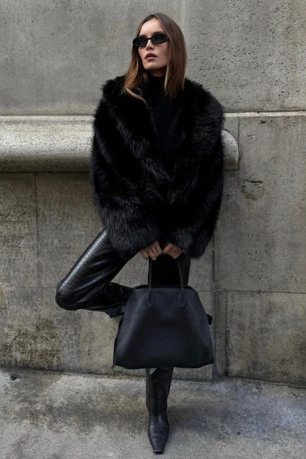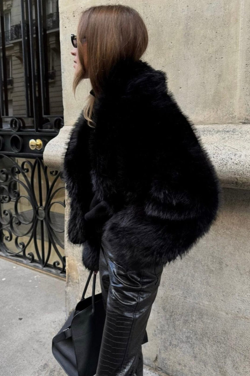 Laura | Krótka czarna kurtka ze sztucznego futra