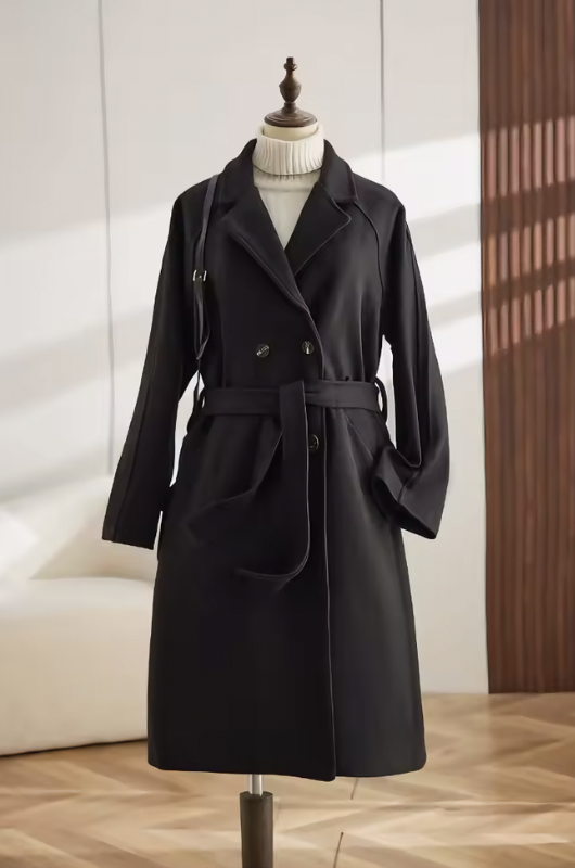 Luksusowe wykończenie i dopracowane detale – Stylowy kołnierz, klasyczne podwójne zapięcie na guziki oraz wysokiej jakości materiały tworzą ponadczasowy i wyrafinowany wygląd.