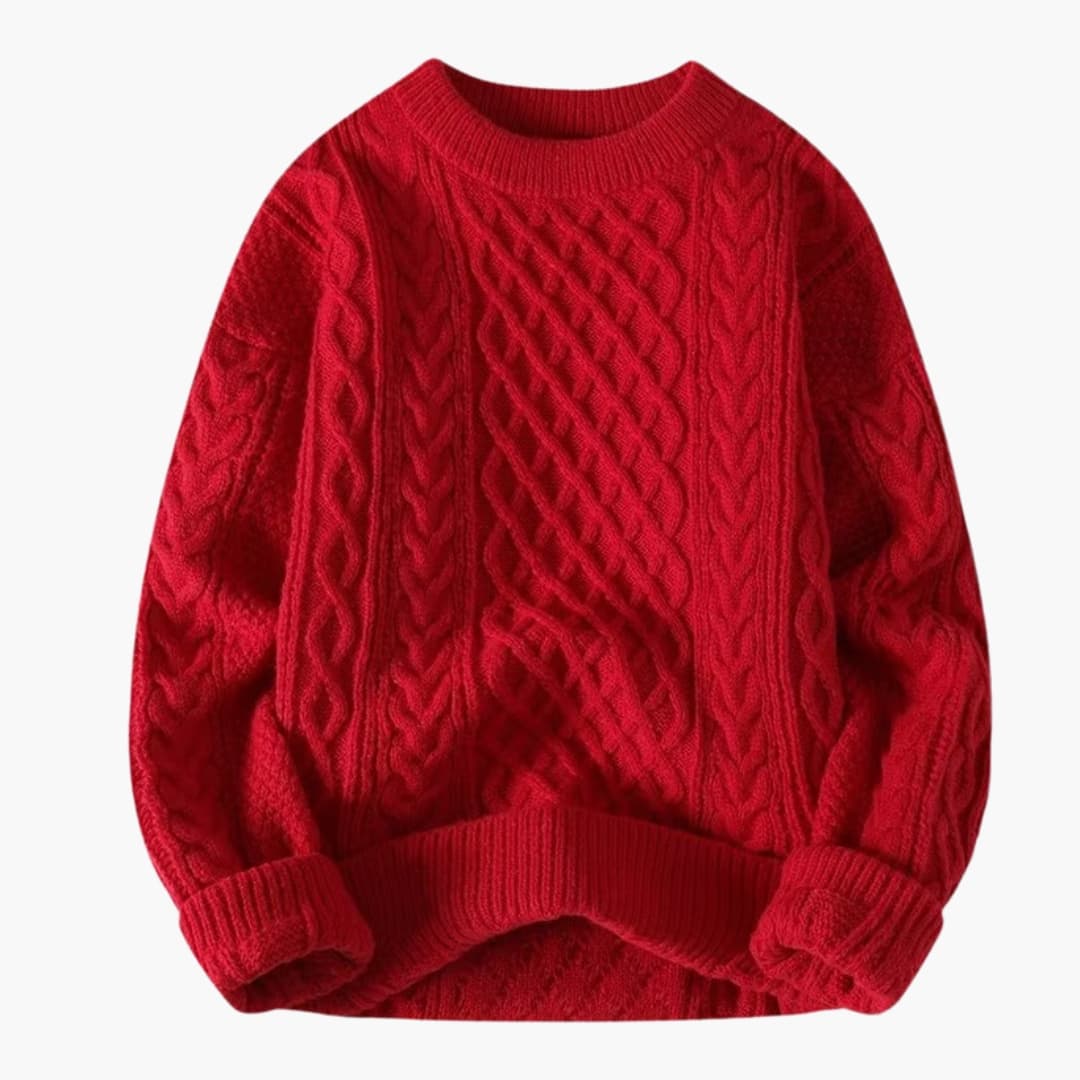Damski sweter z okrągłym dekoltem i splotem warkoczowym