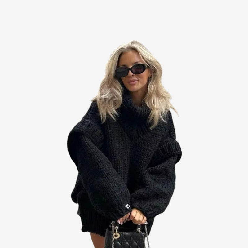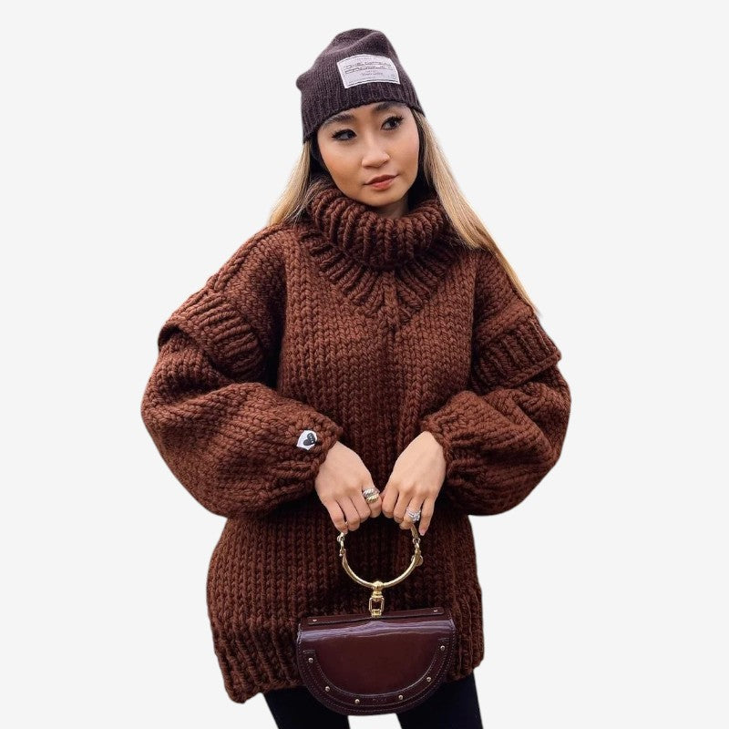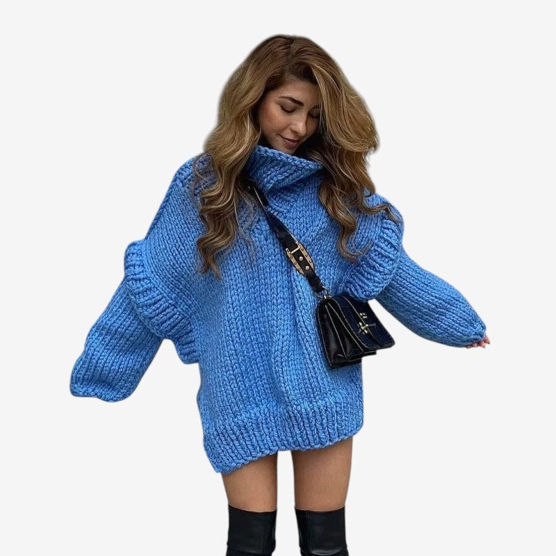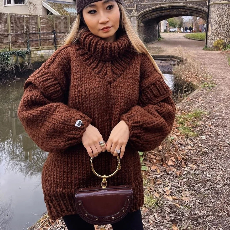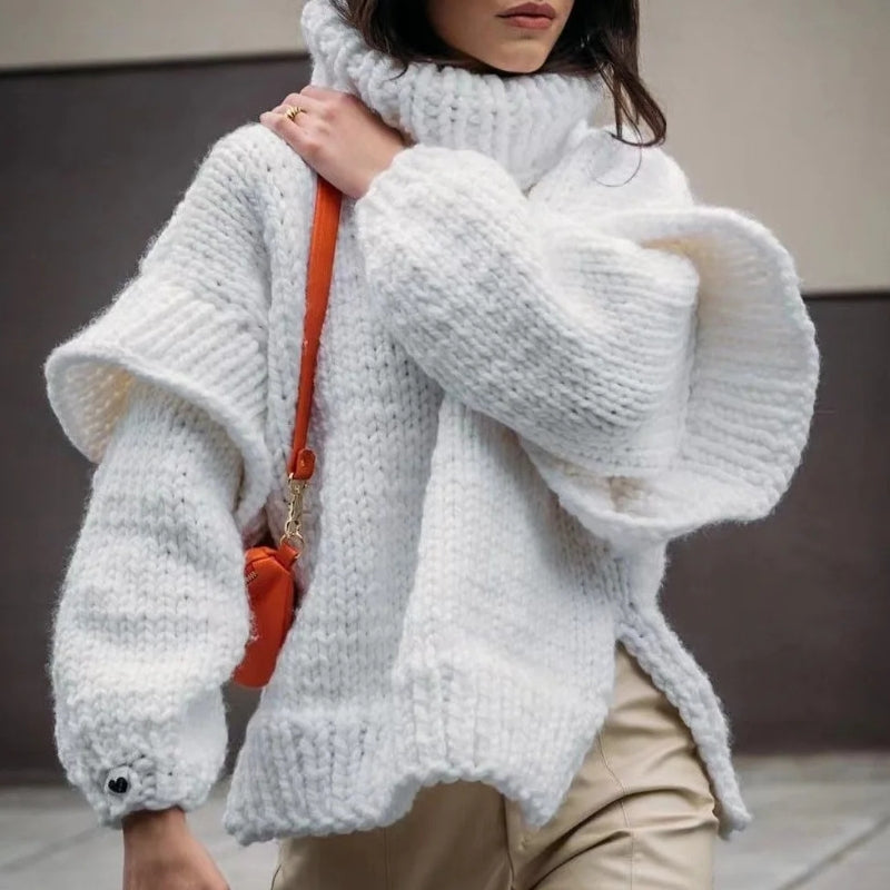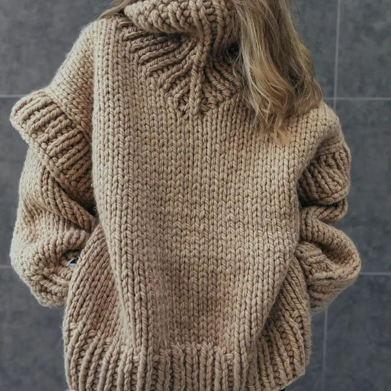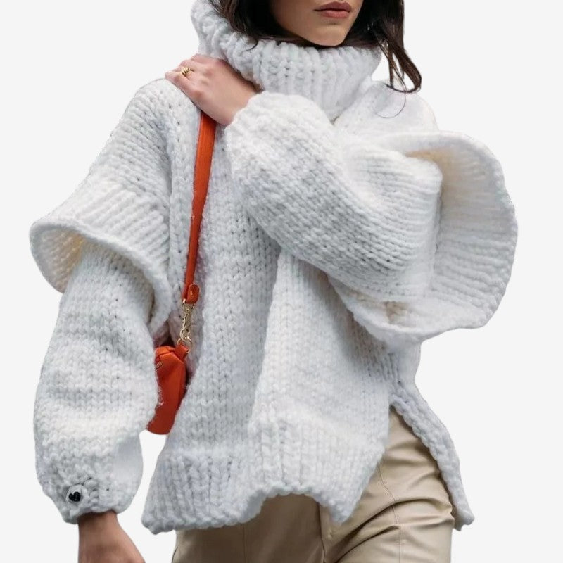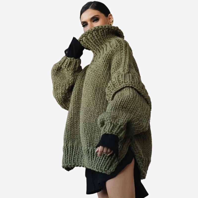 Tamara - Oversized sweter z długim rękawem, golfem i prążkowanymi detalami