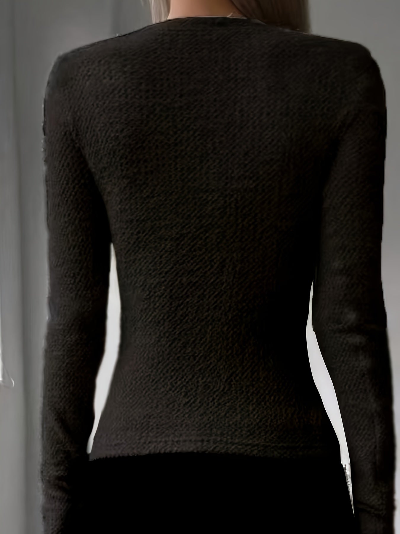 • Okrągły dekolt i długie rękawy – ponadczasowa forma, która sprawdzi się na każdą okazję.