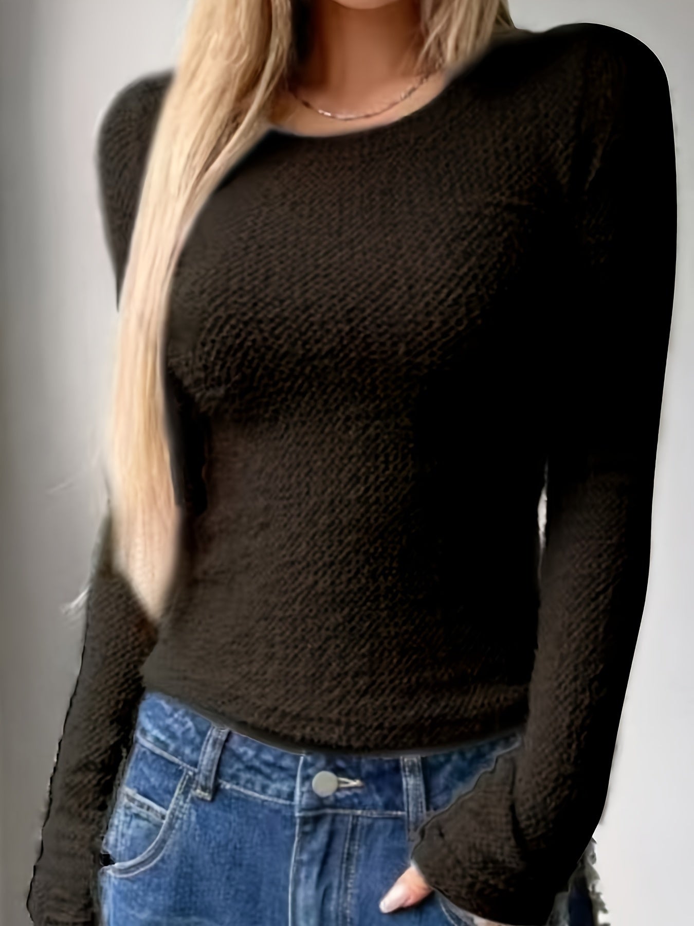 Miękki, elastyczny materiał dopasowuje się do sylwetki, a klasyczny fason z okrągłym dekoltem sprawia, że sweter pasuje do każdej stylizacji — od casualowych zestawów po bardziej formalne wyjścia.