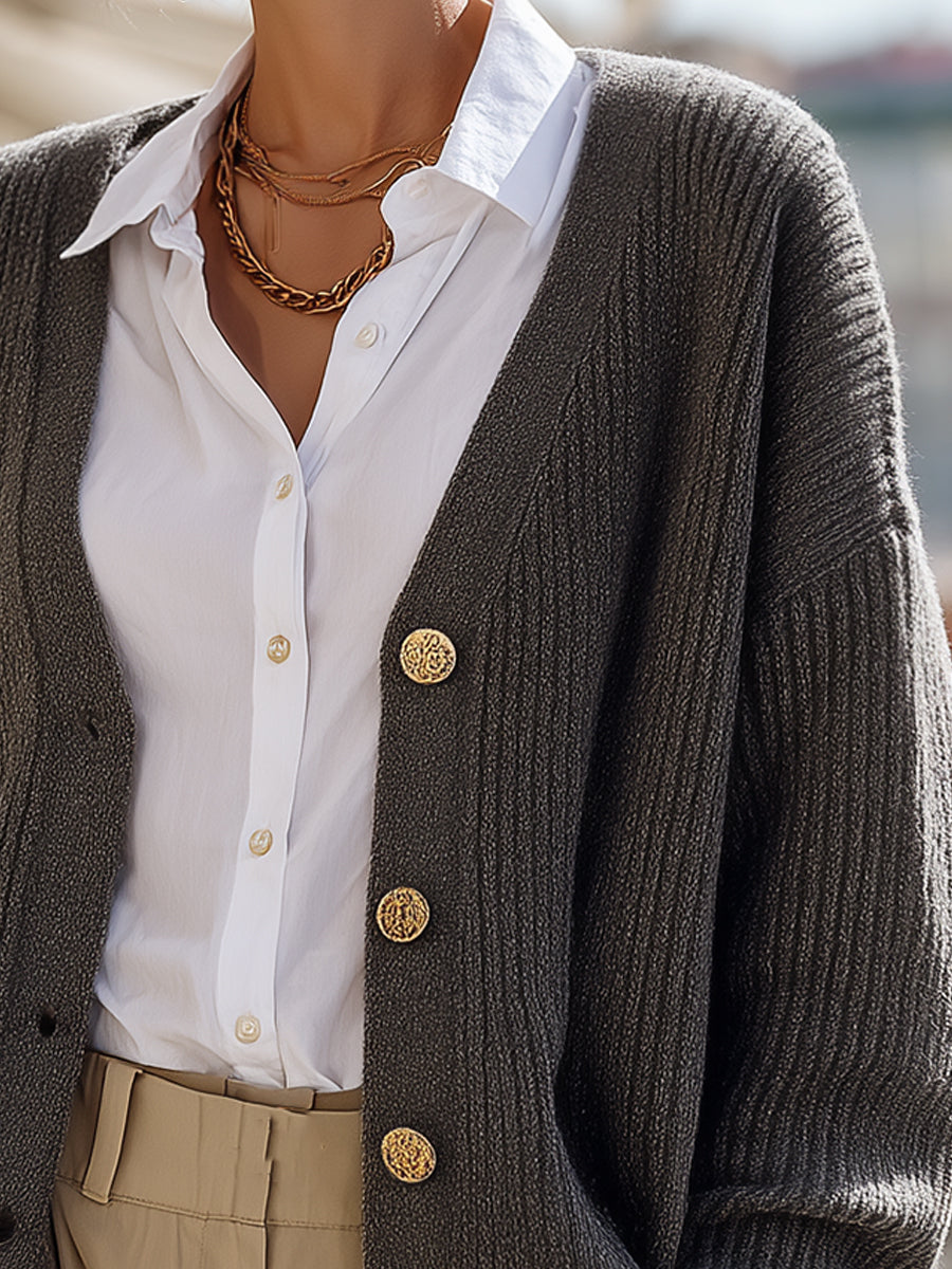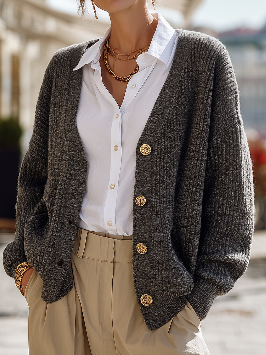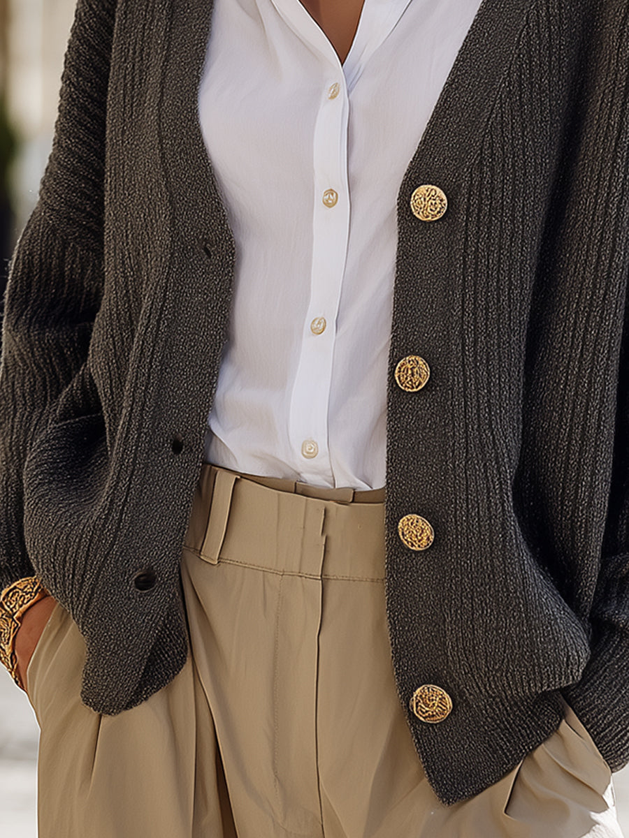 Chany | Dzianinowy kardigan w kolorze grafitowym z złotymi guzikami