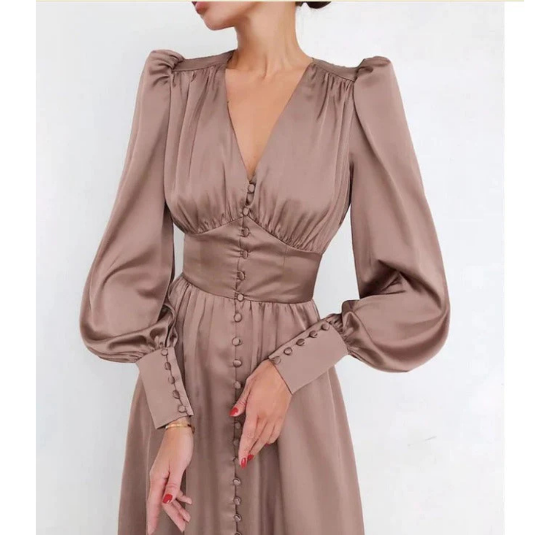 Zanira - Klasyczna Sukienka na Imprezę z Rękawami Lampion | Dekolt w Serek